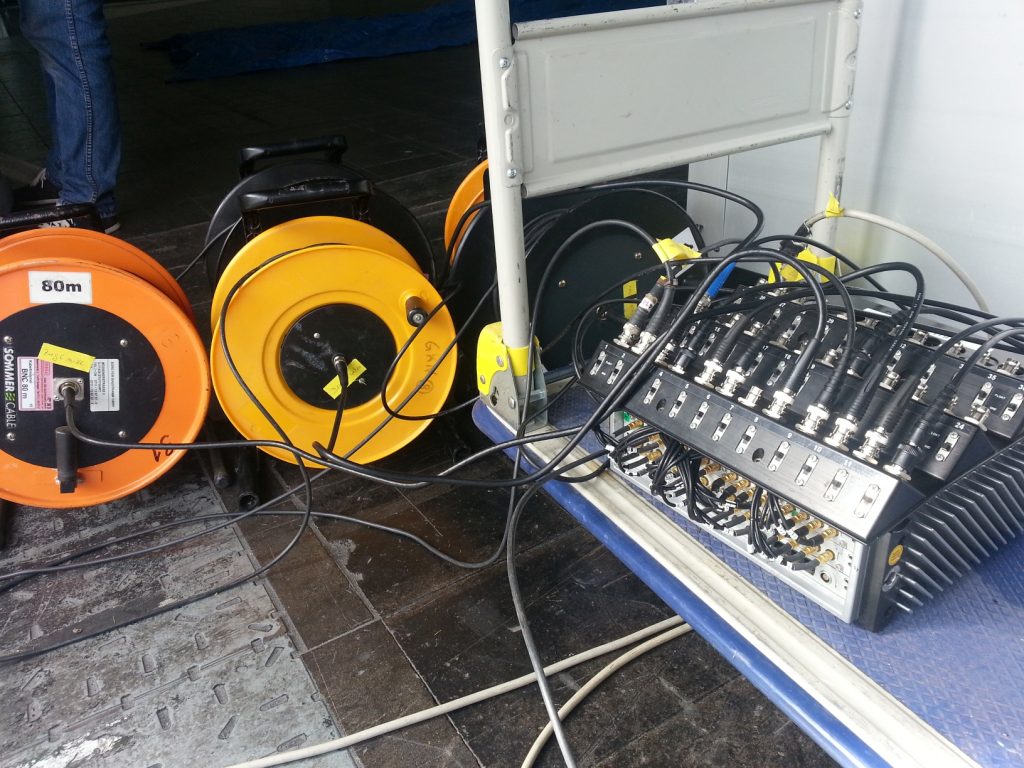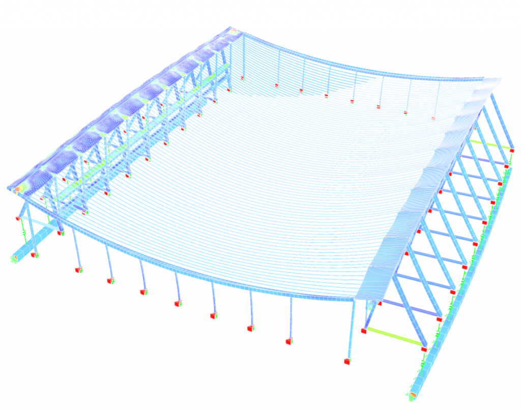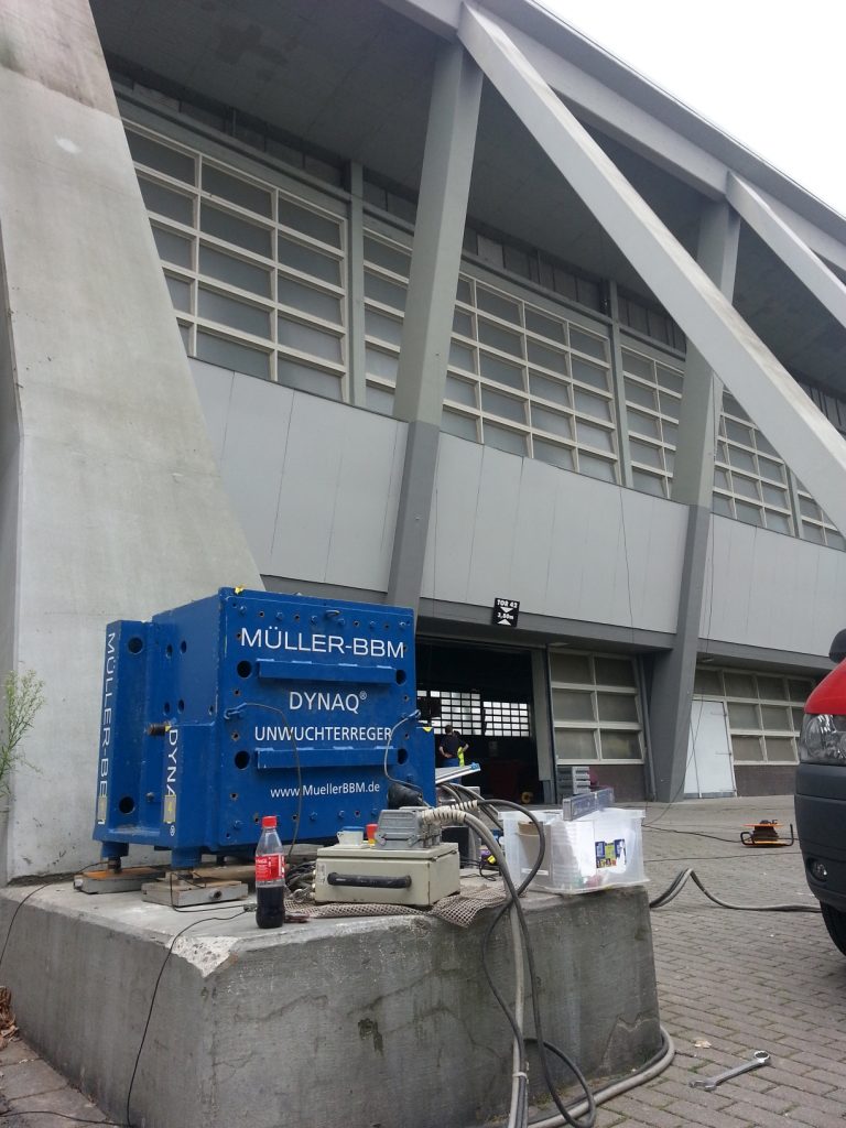 Für die Westfalenhalle IV in Dortmund wurde eine Beurteilung der strukturellen Integrität der Erdanker gefordert. Diese Erdanker sind wegen der Verwendung eines in den 1950er Jahren gebräuchlichen Spannstahls durch Spannungsrisskorrosion gefährdet. Die hier durchgeführte Herangehensweise einer nicht-invasiven Untersuchung durch das messtechnische Erfassen und durch dynamische Finite-Elemente-Berechnungen abgeglichene Schwingungsverhalten des Tragwerkes konnte dieser Zustand der Erdanker eingeschätzt werden. Die Konzeption dieses Vorgehens und die dynamischen Berechnungen wurden von mir entwickelt und durchgeführt – die Schwingungsmessungen vor Ort wurden durch Müller-BBM begleitet.