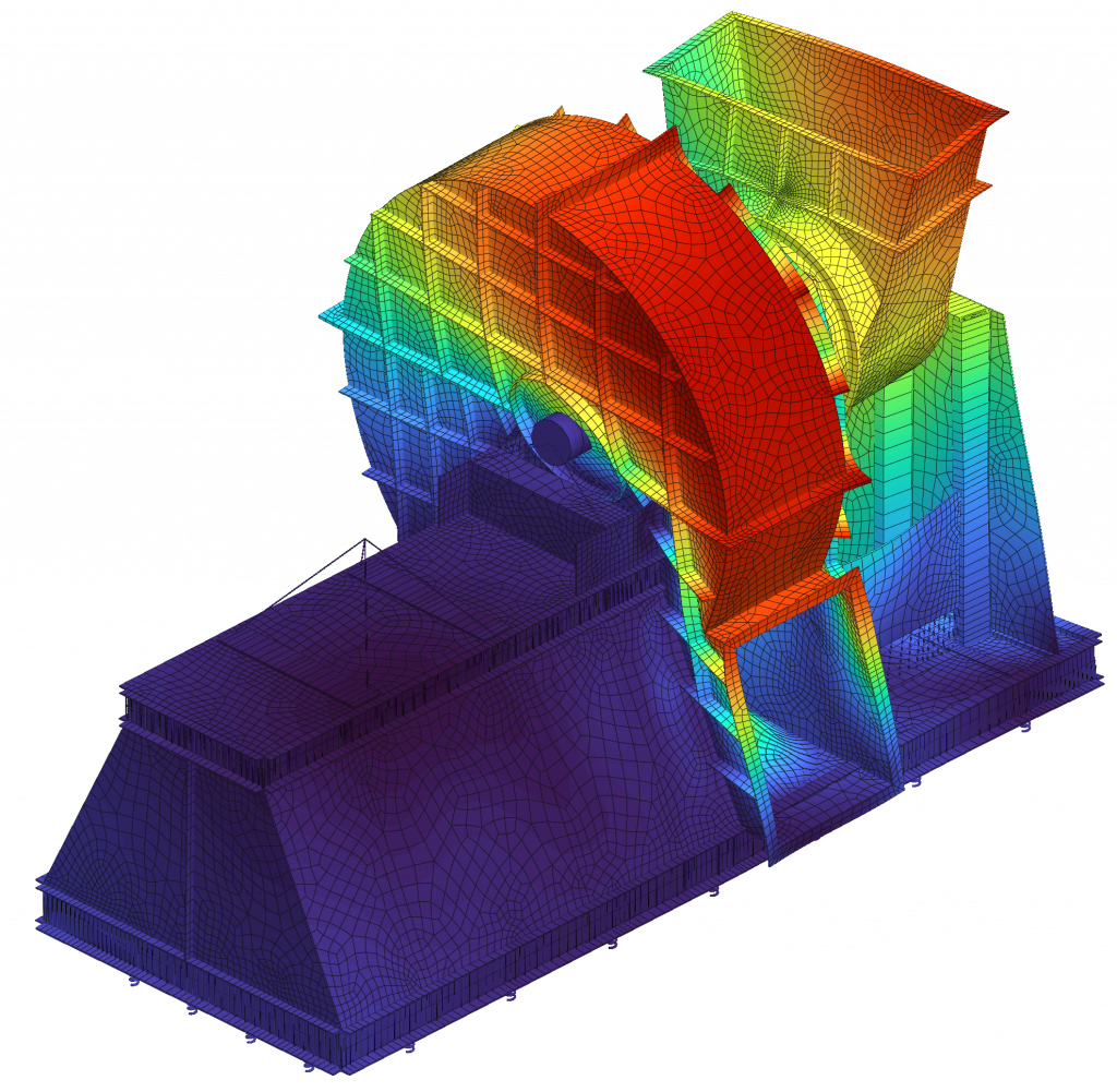 Gerade die Struktur zwischen der Turbine und dem Fundament bestimmt das dynamische Verhalten des Gesamtsystems entscheidend mit. Durch die Berücksichtigung dieser Zwischenstruktur können potentielle Resonanzphänomene erkannt und durch ein adäquates Design des Maschinenrahmens wirkungsvoll vermieden werden.
