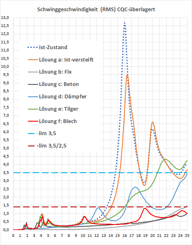 Im obigen Zitat ist die beste Vorgehensweise bei Schwingungsproblemen skizziert – die Entwicklung eines genauen Verständnisses des zugrundeliegenden Mechanismus ist die Basis für die Untersuchung der wirksamkeit verschiedener Lösungsansätze. Sehr vorteilhaft für die Lösungsfindung ist, wenn durchgeführte Schwingungsmessungen am Objekt mit einem Berechnungsmodell detailliert nachvollzogen werden.